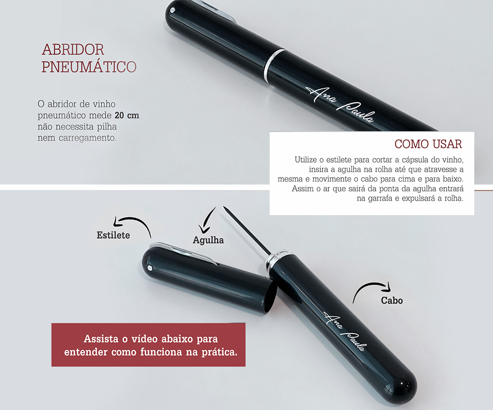 01 Abridor de vinho pneumático personalizado Tamanho: 20 cm Funciona sem pilhas ou carregamento
