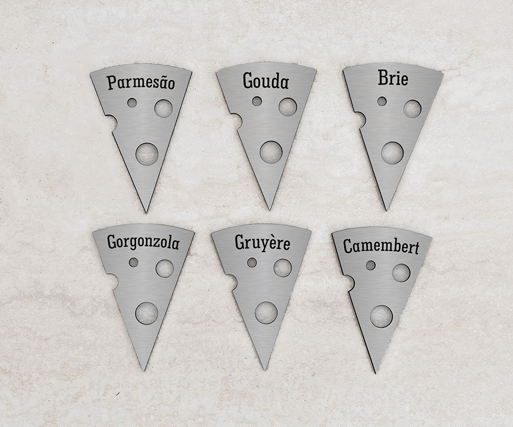 Leve mais elegância e praticidade à sua mesa de queijos com os Identificadores para Queijo Cheese Personalizado da Mundo Wine. Ideal para quem aprecia servir e degustar queijos com requinte, este conjunto é perfeito para festas, jantares sofisticados ou momentos especiais em família.