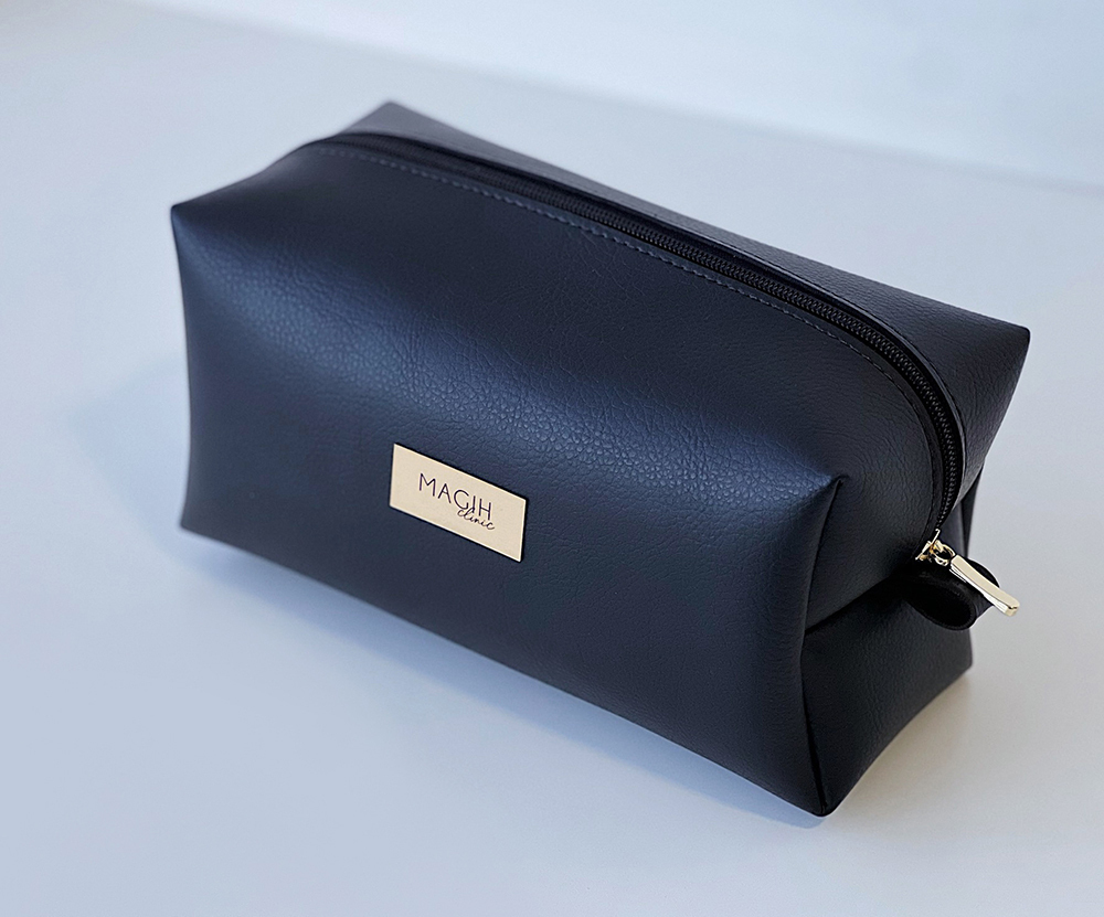 01 Necessaire de couro sintético preta: 22 x 12 x 10 cm