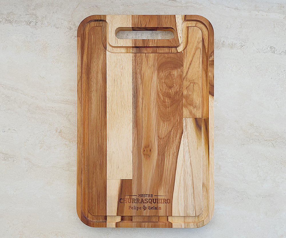 A madeira teca é reconhecida por sua elegância natural, resistência e beleza única. Por ser uma matéria-prima natural e de alta qualidade, cada peça apresenta textura rajada e variações de cor – detalhes que tornam sua tábua verdadeiramente exclusiva. A gravação personalizada a laser ressalta ainda mais a sofisticação do produto, tornando-o ideal para uso próprio ou para presentear.