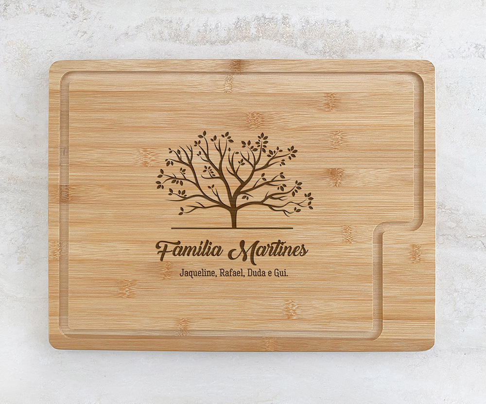 Por se tratar de um produto feito com matéria-prima natural, podem ocorrer variações na tonalidade do bambu e na gravação, o que reforça a exclusividade da sua tábua.